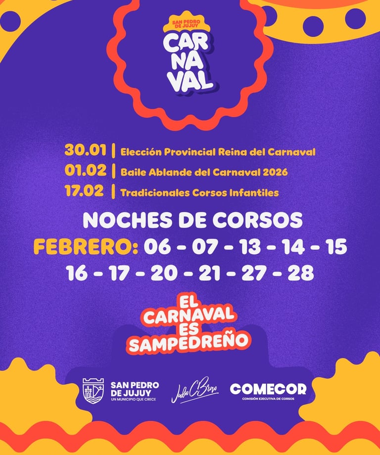 En San Pedro la cuenta regresiva ya comenzó. Febrero de 2026 será sinónimo de ritmo, color y alegría con el regreso de los corsos más esperados del norte , una tradición que cada año convoca a miles de personas.