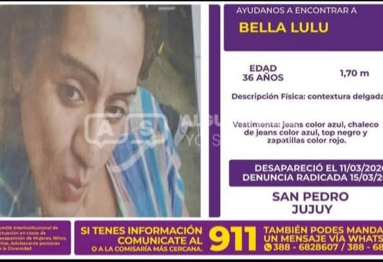 Se ha podido establecer que Bella Lulu se encontraba desaparecida desde el pasado miércoles 11 de marzo. Había salido de su domicilio en el barrio San Miguel de San Pedro de Jujuy tras una discusión familiar. Sin embargo, la denuncia por su desaparición fue radicada por su familia recién el domingo anterior, explicando que la demora se debió a que la víctima padecía problemas de adicciones.